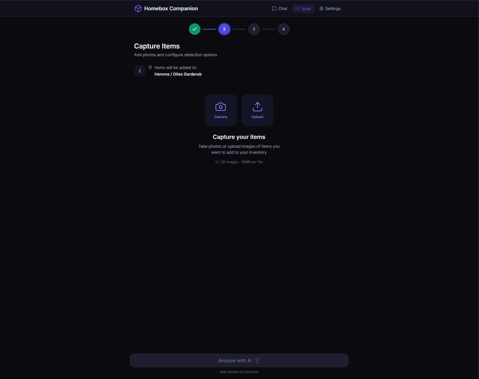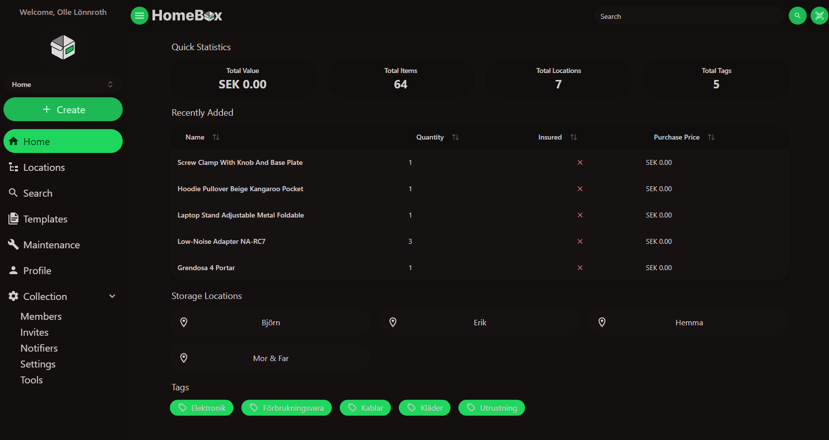 Jag satte upp Homebox tillsammans med Homebox Companion. Homebox är i grunden en Docker-container för inventering av prylar, och Companion-appen gör det hela ännu smidigare genom att använda AI för att automatiskt kategorisera saker utifrån bilder.